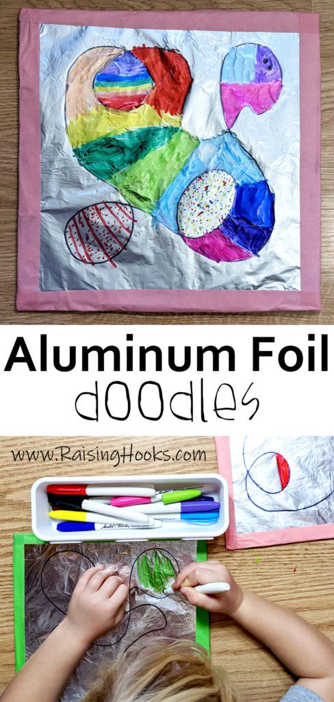 These Aluminum Foil Doodles POP! I love the contrast of the marker on the foil.