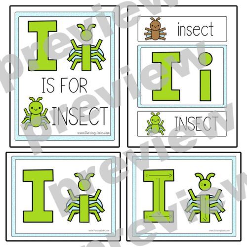 There are 3 pages of wall cards and a finger tracing mat. Decorate your classroom or homeschool space with these “I is for Insect” wall cards. These three pages of vibrant posters are perfect for decorating while also reinforcing letter recognition. Children can practice tracing the letter I by following the arrows on the mat, using their finger to build fine motor skills. This is a fun and interactive way to learn!