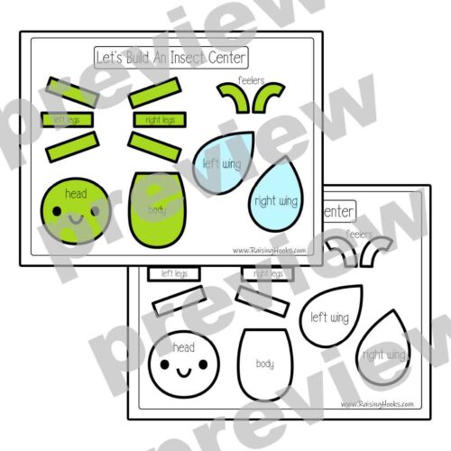 The centers for this Let’s Build An Insect resource is so much fun. The idea is to follow directions to create the insect. Print the page, cut out the pieces, place them in a bin and let your students follow the directions page to create their insect. There are black and white and colored versions of each center.