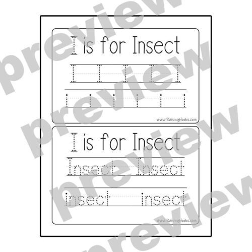 This “I is for Insect” Tracing Page is great for practicing letter I formation. Cut out the rectangle and add it to your “Let’s Build an Insect” craft, allowing students to proudly display their work, or simply use it as a standalone worksheet for handwriting practice!
