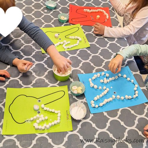 We made these marshmallow bunnies in preschool and they loved it, then followed it up with our Easter egg letter tracing worksheet.