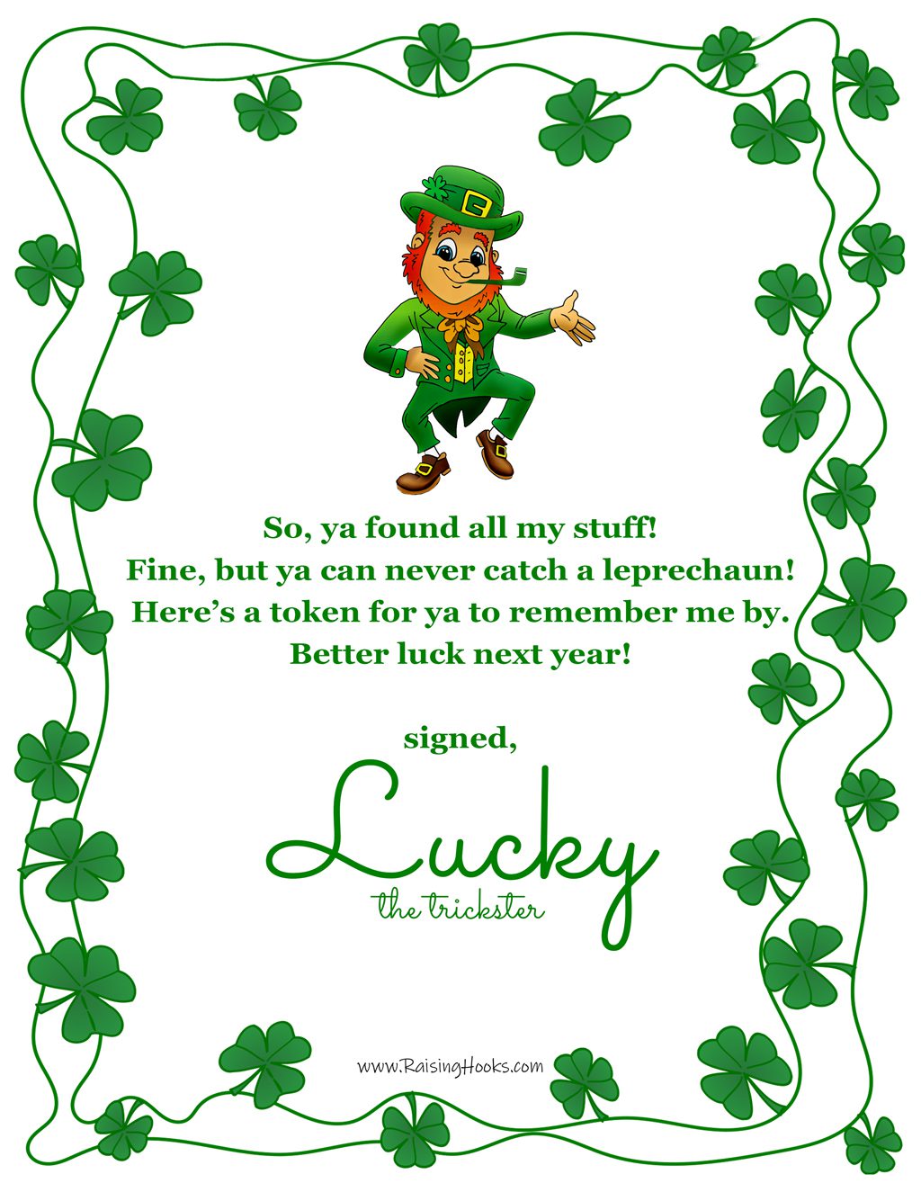 Our St. Patrick’s Day Scavenger Hunt started with this note taped to the bedroom door. I even made a blank one for you in case you want to write your own!